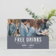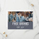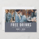 Funny wedding save the date cards in a modern three photo blue design that reads "Free drinks and we're getting married". Customise the front of the card with your photos. Add your names, wedding date and location. Customise the backside of card with your wedding details. Contact me through the button below if you need assistance.