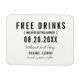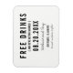Funny "free drinks" wedding save the date magnets in a black and white modern block and script design which reads "Free drinks (and we're getting married)". Customize with your names, wedding location and wedding date.