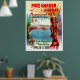 A vintage poster advertising the Free harbour jubilee, Los Angeles and San Pedro, California on April 26 and 27, 1899. A woman in a jewelled dress holds the American flag and sounds a trumpet. In the background, cupids drop flower blossoms over a detailed aerial view of San Pedro, the port of Los Angeles and Free Harbour, California. Railroad lines connect Los Angeles and the bay. From an original 19th century (1899) lithograph by J.F. Derby. All Rights Reserved © 2013 padre art