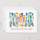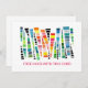 A colourful modern card conveying kindness, the design has "free hugs with this card" text in a pink script on the front of the card.