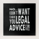 No, I Don't Want to Give You Legal Advice for Free - funny lawyer humour quote for a professional attorney with student loan debt or just to bring a smile to someone's face! > Cute pass-the-bar association exam idea. Use for student, law-grad, graduate, or class graduation. > Personalise it! Add custom name, photo, or text.