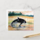 Beautiful orca whale in jump watercolor drawing.Tex customisable postcard for nature and whale lovers.