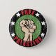 Solidarity for free Palestine button with green red & white colours. Cracked grungy design on button.