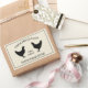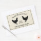 Free range farm fresh eggs rustic chicken drawing Rectangular Sticker. Vintage design with farm animal silhouette and rustic typography template. Add your own homestead name or quote. Great for egg seller, poultry meat seller, farming business, restaurant, market shop, local grocery store, butchery and more. Customisable logo colours. Rectangular shape with eggshell colour background and border.