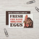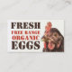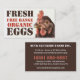 Here's an eyecatching business card for egg producing chicken farmers! A vivid rusty orange coloured Rhode Island Red heritage point of lay hen, with sharp untrimmed beak as birds usually are kept when in a spacious, free range, family farm type setting and not in an overcrowded commercial eggery. Rich brown and orangey red coloured stencil crate style lettering announces that you have fresh organic free range eggs, and the reverse side has numerous text fields for you to customise with your own personal and business information. This is the standard sized business card. Other sizes and designs available in the store. www.zazzle.com/countrycorner