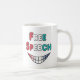 Free Speech design features letters in red, white and blue with a large grin underneath. Because freedom of speech to say what you like, when you like is a happy thing.