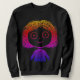 A bold and modern design featuring an illustrated character in an expressive hand-drawn sketch style. The illustration is characterized by dynamic lines and a stunning color gradient palette—ranging from vibrant yellow and orange to deep pink and purple. The artistic and unique look of the character, with its voluminous curly hair and large eyes, adds a touch of creativity and funky energy to any product. The design stands out particularly well on dark backgrounds and is perfect for streetwear, fashion accessories, and contemporary graphic art.