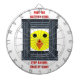 This awesome dart board design has a very serious message. The design features a little yellow chick with cute little black eyes and an orange beak peeking out from behind a metal square cage. The text says Free the battery hens. It reflects my personal issues with the way animals are kept and exploited for human use throughout the world.