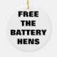 This cute pendant has a very serious message. The design features a little yellow chick with cute little black eyes and an orange beak peeking out from behind a metal square cage. The text on the back says Free the battery hens. It reflects my personal issues with the way animals are kept and exploited for human use throughout the world.