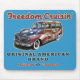 A vintage woody is combined with an American flag making this the perfect surfing automobile. Freedom Crusin', the original American brand.