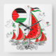 Beautiful Sailing Boats with Watermelon Sails, Palestine Flag Colours Rising Sun, and three doves carrying olive branches, a Heart and The Key of Return, representing the Freedom Global Sumud International Flotilla Humanitarian Mission heading to Gaza, to Break the Siege, carrying Aid, Hope and Freedom to Palestine. Original Vector Art Copyright BluedarkArt TheChameleonArt.