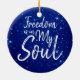 Where else can freedom exist except in the soul. A beautiful handwritten style font with a dark blue background of stars.