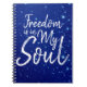 Where else can freedom exist except in the soul. A beautiful handwritten style font with a dark blue background of stars.