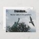 Beautiful picture of the Statue of Liberty keeping watch over the New York Harbour with bird flying in background and message: Freedom...Never take it for granted! Great message for this Presidential Election year.