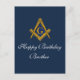 Navy Blue, Freemason Happy Birthday card. Masonic square and compass Birthday postcard. Please personalise it with your own text or delete it and hand write your own words.