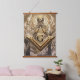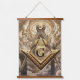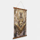 The polyester fabric displayed many wrinkles and several sharp creases throughout.  At the bottom of the tapestry, I noticed a bulge in the fabric because it was not pulled tight enough before being connected to the wooden boards.  It took me over an hour to spay water on the tapestry before putting it on an ironing board where I used a warm iron over a polyester cloth to remove the wrinkles and creases in the material.   I was able to get out the wrinkles and creases that made that tapestry look as beautiful as its picture.