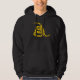 The "Don't Tread on Me" rattlesnake is an image that dates back to America's Revolutionary War. This black hoodie bears the FreeOne version of that coiled rattlesnake in traditional Gadsden flag yellow on the front, and the words "Don't Tread on Me" boldly on the back.