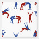 A blue and red freestyle Greco Roman wrestling pattern. A hand drawn illustration pattern featuring different freestyle wrestling fighting techniques. An ideal design for anyone who loves to wrestle, wrestling coaches, wrestling team events and gifts and sports enthusiasts. A Greco Roman wrestling design prefect for gifts, party decor and personalised home decor.