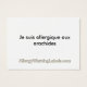 Alert I am allergic to peanuts. Planning a trip to France but suffer from Peanut allergy? Present this card to restaurant staff. Card has French wording that translates to "Alert! I am allergic to Peanuts"