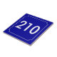Patterned after French street signs and address numbers. Narrow white border with reverse circle filets at the corners. Dark blue background. Ceramic number tiles. You customise with the numbers or letters you need for your ceramic tile or mosaic sign. Number tile for weather proof signs, house numbers