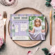 This cute french cafe/bakery/patisserie theme girl's birthday photo invitation features a cream background with a french patisserie/bakery/cafe storefront in lavender purple. The reverse side features a pink background with floral patterns. Personalise for your needs. You can find more matching products at my store.