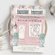 This cute french cafe/bakery/patisserie theme Bat Mitzvah invitation features a cream background with a french patisserie/bakery/cafe storefront in pink. The reverse side features your QR code on a light pink background with floral patterns. Personalise for your needs. You can find more matching products at my store.