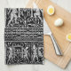 French Black and White Mediaeval Pattern Monogram Tea Towel