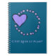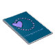 Stars and a woodcut heart in lavender, on a pretty aqua journal with French C'est Quoi le Plan. Means What's the Plan?