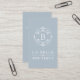 A European inspired business card design in French blue and white, this custom business card has a logo-style hand drawn scroll frame surrounding your monogram. It works well for a boutique, hair salon, nail salon, spa, restaurant, designers, fashion industry, jewellery designer, and other professional businesses. Add or remove lines of text to suit your preferences. There is ample space on the reverse side of the card for including your social media accounts.