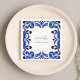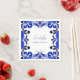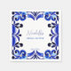 Blue Majolica Mexican Talavera Spanish French Mediterranean tiles bridal shower printed napkins template. Modern watercolor tiles blue colours with modern handwriting font personalised tableware printed napkins custom table decor