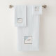 French Blue Stripe Fleur de Lis Script Monogram Bath Towel Set
