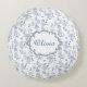 French Blue Toile Chinoiserie Floral Girls Name Round Cushion