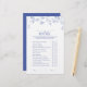 Introducing our stunning French Blue & White Victorian Bridal Shower Game! This game "over or under" is the perfect addition to your upcoming bridal shower. It features a refreshing mix of traditional and modern style, with classic hand drawn blue Victorian florals of garden flowers, bees, and butterflies on one side. Plus, you can customise it with your own bridal details in modern hand lettered calligraphy to make it truly unique. And as a special added touch, turn it around to find a coordinating blue texture on the back adding even more detail. Don’t hesitate - this one-of-a-kind game will make your event one everyone will remember! View suite here: https://www.zazzle.com/collections/french_blue_white_victorian_floral_bridal_shower-119265327422133417 Contact designer for matching products. Copyright Surridge Design Co. for Elegant Invites, all rights reserved.