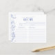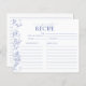 Designed to match our French Blue & White Victorian Floral Bridal Shower Invitation, this trendy recipe card design features pretty hand lettered script typography, classic hand drawn blue Victorian florals of garden flowers, bees, and butterflies, along with modern hand lettered calligraphy. All the recipe lines needed for sharing favourite recipes with the bride-to-be! All text fields, except the proprietary design typography, can be edited, as needed. PLEASE NOTE: THIS RECIPE CARD WILL NOT FIT IN THE SQUARE INVITATION ENVELOPE, SO YOU WILL NEED TO ORDER THE VERTICAL 5X7" DESIGN OF THE MATCHING INVITATION TO GO WITH THIS RECIPE CARD View suite here: https://www.zazzle.com/collections/french_blue_white_victorian_floral_bridal_shower-119265327422133417 Contact designer for matching products. Copyright Surridge Design Co. for Elegant Invites, all rights reserved.