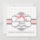 Delicate and demure colour palette of soft dove pastel blush pink, black, white and mint green, this Birth Announcement features elegant French copperplate calligraphy style swirls and scrolls in the background, script flourishes, a bracket shaped frame and a beautiful hand painted ribbon pink bow, with French ruched style satin lace border. All made from original, hand painted watercolor artwork by Audrey Jeanne Roberts. The result is an exquisitely beautifully modern and contemporary Baby ensemble. On the reverse side there is the same damask pattern and a bracket revealing a place for your baby's photo. You can easily add your own picture or change the messages.