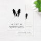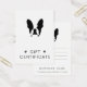 Gift certificate template ideal for dog care, dog walking, dog sitting, pet photographer services. The modern design shows french bulldog head and paw print pattern.