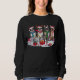 Cute sweatshirt featuring four French Bulldogs with Santa hats, reindeer antlers, elf costume and Christmas lights. Adorable design, perfect for the holiday season, especially Christmas, a major holiday in the US. You'll attract attention and express your love for dogs, creating a unique, warm, and cheerful style.