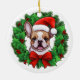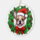 Celebrate the holiday season with our festive French Bulldog Christmas wreath ornament. This charming ornament features a vibrant illustration of a green Christmas wreath, with the adorable face of a French Bulldog wearing a cheerful red Santa hat at the centre. Perfect for dog lovers and holiday enthusiasts, this delightful decoration adds a touch of festive cheer to any Christmas tree. Made from high-quality materials, it ensures lasting beauty year after year. Hang it on your tree or gift it to friends and family for a heartwarming holiday surprise.
