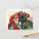 This postcard features a reproduction of my original watercolor painting of a french bulldog present.