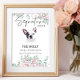 The lovely French Bulldog dog signature drink sign features a beautiful floral pet design in watercolor style- perfect for a wedding saturated in neutral tones. It is an attractive way to accent your event's cocktail, food, or dessert table! Personalise the wedding bar sign with the pet's name and drink details.