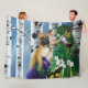 A Dryad holding a brown French Bulldog in a forest of Birch Trees.