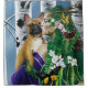A Dryad holding a brown French Bulldog in a forest of Birch Trees.