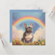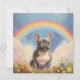 A personalised Frenchie French Bulldog memorial sympathy card with a beautiful painting of a French Bulldog on a heavenly hill with a beautiful rainbow overhead. Symbolising the French Bulldog dog has passed the rainbow bridge to doggy heaven. You can personalise it with your own French Bulldog dog's name or any other text on the back side of the card. Makes a special memorial or sympathy gift for any Frenchie dog lover if their dear dog has passed.
