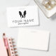 Name Badge template ideal for dog care, dog walking, dog sitting, pet photographer services. The modern design shows french bulldog head and your name.