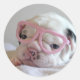 French Bulldog in Heart Glasses Classic Round Sticker