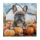 French Bulldog in Pumpkin Patch Ceramic Tile