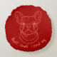 French Bulldog Line Art. Built Small. Loved Big. Round Cushion