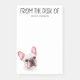 These post-its are awesome! They feature an adorable watercolor French Bulldog and have "From The Desk Of" and a name. They'd be a super cute gift for your Frenchie loving friends or family.
