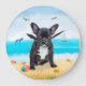 Cute dog sitting on beach is a perfect gift idea for someone who love this dog breed.