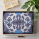 blue on blue on white, graphical pattern with French Bulldogs puppy in a lot of colours